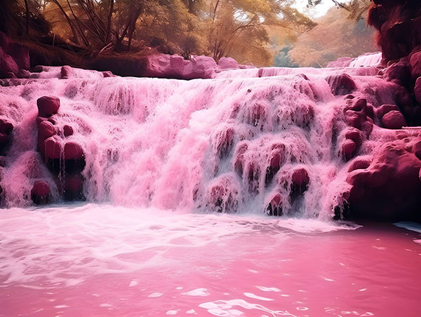 পানি দেখতে সাধারণত নীল এবং সবুজ রঙের হয়। কিন্তু কানাডায় রয়েছে ভিন্ন একধরনের জলপ্রপাত যার রঙ গোলাপি। কানাডার অ্যালবার্টা ওয়াটরন লেকস ন্যাশনাল পার্কের ক্যামেরন জলপ্রপাতে এ রকম গোলাপি রঙের জলধারা দেখতে পাওয়া যায়। স্থানীয়রা বলেন, যেদিন খুব বৃষ্টি হয়, সেদিনই গোলাপি পানির ধারা নেমে আসতে দেখা যায় পাহাড়ের ওপরের নদী থেকে। মূলত জলপ্রপাতের পানি গোলাপি হওয়ার জন্য দায়ী পাহাড়ের ওপরের দিকের মাটিতে অ্যাগ্রোলাইট নামে এক রাসায়নিক পদার্থ। যা বৃষ্টির জলের সঙ্গে ধুয়ে নদীতে মিশলে পানির রঙ খানিকটা লাল বা গোলাপি হয়ে ওঠে।